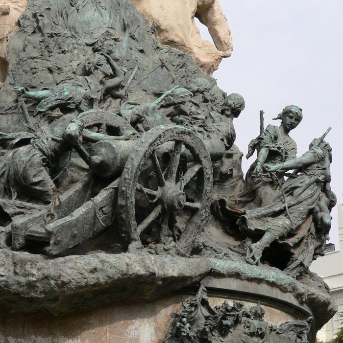 (Ampliar) - La Condesa de Bureta y otras heroínas arrastrando una pieza de artillería en el Monumento a los Sitios. Zaragoza. Viquipèdia.