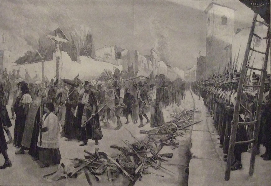 (Ampliar) - "Los Defensores de Zaragoza saliendo de la ciudad el día 21 de febrero de 1809". Maurice Orange - Henri Dochy. Viquipèdia.