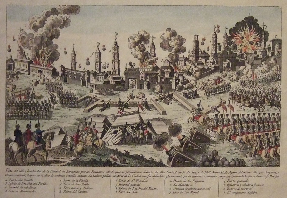 (Ampliar) - "Bombardeo de Zaragoza durante el primer Sitio (ha. 1808)". Mariano Latasa. Viquipèdia.