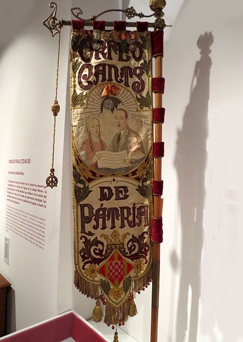 (Ampliar) - Penó de l'Orfeó Cants de Pàtria, dirigit molts anys pel mestre Josep Baró i Güell. |