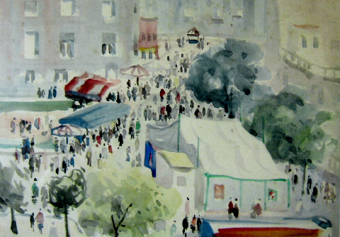 Efectivament, al cap d'una estona apareixien infinitat de carretons conduint taules i altres andròmines. Després d'un terrabastall de martellades , tota la plaça quedava preparada per a l'endemà, dia en què sorgien una sèrie de tendes afilerades formant carrers on hom trobava tota mena d'objectes. Cadascú exposava la mercaderia a la seva manera, aquella que considerava més adient per a atraure el comprador. Allà es confonien les robes de seda amb les de llí i estam, els induments ciutadans amb els camperols, els serviments de cuina amb els de tocador, les joguines, etc. En aquells moments en els que encara no hi havia botigues dedicades a la venda de joguines, on es trobaven aquells paradisos per als infants que semblaven il·lustracions de contes de Reis, sinó únicament a les parades de la fira? Eren la temptació de la mainada que s'hi enaiguaven contemplant-les, i el turment dels pares, perquè com en un palau d'il·lusió hi penjaven cascades d'armes, tambors, trompetes, cercles amb timbre, carros d'escombriaire amb la corresponent campaneta, cavalls de cartró, trencaclosques, jocs de l'oca, les bufes, els espantasogres, i el "mico que pujava i baixava". I també rastelleres i més rastelleres d'aquelles inefables criatures anomenades "pepas", nines que vestien camisa blanca senzilla i calçaven "polacres", i a cada galta duien pintada una rosella de salut. A la nit s'endreçaven les parades i les taules presentaven una estructura descarnada. Això va durar a la Rambla fins l'any 1900, en què es va disposar que les parades de firataires es situessin a la Plaça de Sant Agustí. Posteriorment s'anirien extenen per la Gran Via de Jaume I, fins el seu trasllat definitiu al Parc de la Devesa. Notes (1) - Les parades no passaven de la cruïlla amb el carrer d'En Jansana, actual carrer d'Abeuradors; més enllà hi havia el "pati dels esparters". Quan aquest va ser enderrocat, i l'indret es va convertir en la rambla d'Àlvarez, s'hi situaren les parades dedicades a la venda de teles, gorres, mantes i canyes. Bibliografia