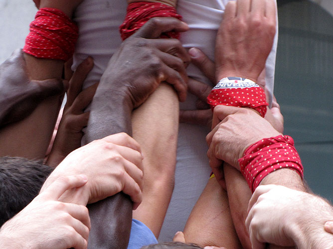 (Ampliar) - Els Marrecs de Salt preparant un castell