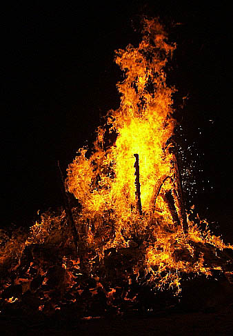 La tradició de l'encesa de les Fogueres de Sant Joan se sol relacionar i vincular, per la seva coincidència amb el solstici d'estiu, amb tota mena de ritus, costums i tradicions molt reculats en el temps. De fet, la terminologia emprada en aquesta data, està arrelada en antics costums celebrats a casa nostra; per exemple, durant al nit coincident amb aquest solstici, els romans sortien al camp per recollir el gram negre, és a dir, la verbena, herba remeiera l'obtenció de la qual aquesta nit portava ventures i riquesa. El costum, segons Amades, va estar tant arrelat, que es va estendre fins avui per donar nom a la revetlla de Sant Joan. Les festes i costums de la nit de Sant Joan recorden molt les pal·lílies romanes, les festes en honor de Pal·las, que havia estat la divinitat del foc, i també dels prats i dels ramats. Durant aquestes festes es creia que les aigües i herbes tenien virtuts, i s'encenien fogueres que, segons Ovidi, la gent saltava tres vegades, amb l'objectiu d'obtenir salut i felicitat. El mateix Ovidi relata que el dia de la festa de Pal·las, dos pastors, entretenint-se rascant dos troços de fusta de figuera cantelluts, varen fer saltar una guspira, i així va ser descobert el foc, que va ser dedicar a la deesa i va prendre sentit ritual i sagrat. Probablement, a l'antiguitat, els focs de Sant Joan s'encendrien d'una forma ritual i cerimonial. Amades esmenta que el cristianisme en un principi va combatre les fogueres, per tal com eren una resta del paganisme. El concili de Constantinoble de 680 va condemnar durament la seva encesa. No obstant, el costum estava tant arrelat que no va ser possible extingir-lo; el clergues cristians varen acceptar-lo i canviaren el seu sentit. Durant els segles de l'Edat Mitjana, les festes de Sant Joan es caracteritzaren tant per l'encesa de grans fogueres, com per processons pels camps, amb torxes enceses, el sentit de les quals era la purificació de l'aire i l'escalfor solar, gràcies a la qual les llavors germinarien i les collites serien abundants. A les nostres terres, amb moltes variants, hi havia el costum de llençar alguns objectes a les flames: des d'herbes, fins a estris vells. Una tradició molt arrelada, viscuda per molts gironins actuals, era la de coronar la foguera, preparada uns dies abans per la mainada de cada barri, amb un ninot, vestit amb els paraments que els veïns havien donat, i que era immolat amb la resta de la pira. Aquesta havia estat bastida pels marrecs que havien anat passant per les cases sol·licitant Teniu res per Sant Joan?. La gastronomia relacionada amb aquesta festivitat té com a eix les coques de pa de pessic i fruita confitada, però també se'n prenen de recapte, de llardons, pinyons i de moltes altres menes. Antigament, les coques per aquesta diada eren rodones amb un trau al mig, la qual cosa es podria relacionar amb algun antic ritus solar. Avui en dia, la mida estàndard sol ser cànònica, o sigui que fa el doble de llarg que d'ample. L'altre element característic d'aquesta nit és la pirotècnia. Els nens comencen a participar en la festa des de ben petits brandant bengales i llençant bombetes -les anomenades cebes-, explosius que s'activen pel cop amb el terra, del tot inofensius. A mesura que es fan grans, els pares els van permetent de fer ús d'explosius de metxa cada cop més potents. Començant amb les piules i traques inofensives i acabant amb petards més potents. La nit s'emplena de trons, fonts de llum i el cel de coets artificials de molts de colors diferents. Bibliografia bàsica. |