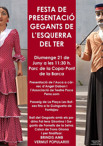 El diumenge 21 de juny 2015, organitzat per Caixa de Trons Girona i diverses associacions de l'Esquerra del Ter, va tenir lloc el bateig dels dos nous gegants, la Carmen i en Benet, dissenyats per Nuxu Perpinyà, a la confluència entre el passeig de la Copa i el Pont de la Barca.