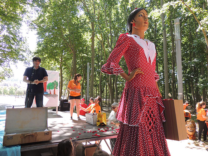 (Ampliar) - Moment del bateig dels gegants la Carmen i en Benet, amb pètals de rosa