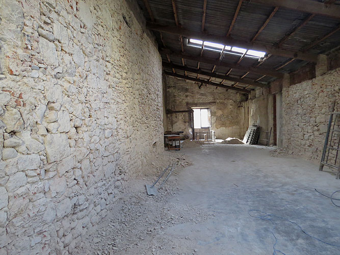 Als murs est i oest s'han localitzat bigues cremades (incendi durant el primer terç del segle XX), el que va permetre convertir tres plantes en dues més altes.