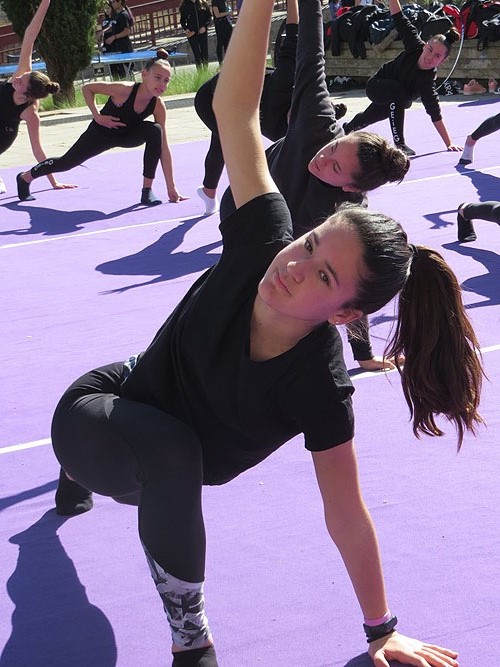 (Ampliar) - Gimnàstica rímica a la plaça de Salvador Espriu.