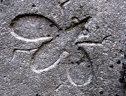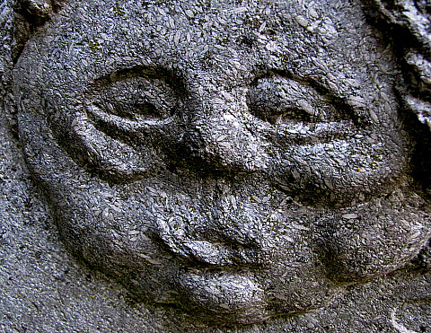 A la part del darrere hi ha una cara d'infant o angelet bufant, envoltat de les mosques de Sant Narcís estilitzades. Al davant de l'escultura, una placa commemorativa col·locada el 29 d'octubre de 1999, indica: