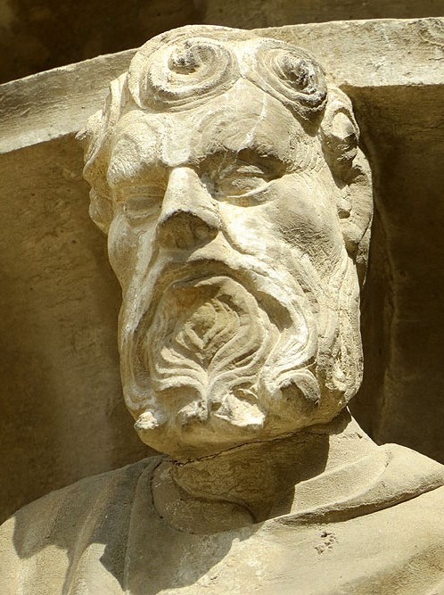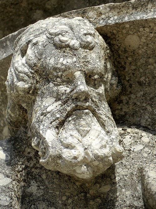 (Ampliar) - Mènsula amb guerrer i monstre, a la banda est de la porta.