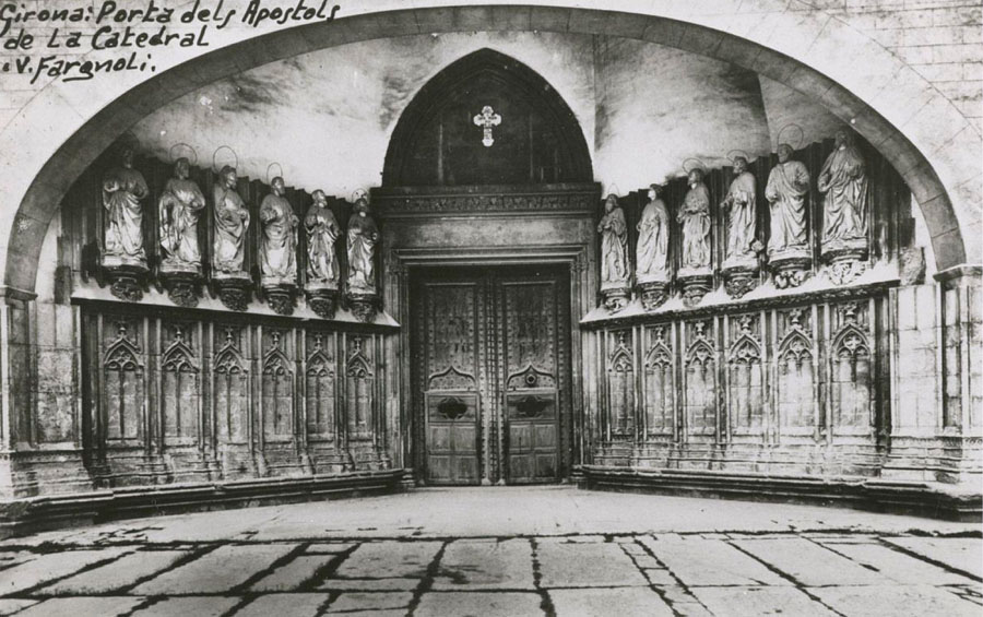 (Ampliar) - La porta dels Apòstols de la Catedral abans de ser retirades les seves imatges. 1911-1936. Valentí Fargnoli Iannetta. CRDI . Ajuntament de Girona.