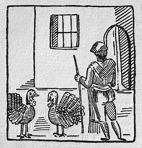 (Ampliar) - Venedor de galls dindi. Gravat gironí antic.