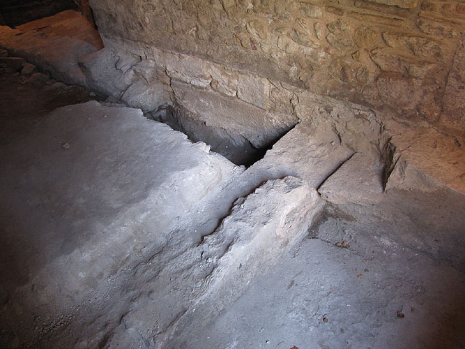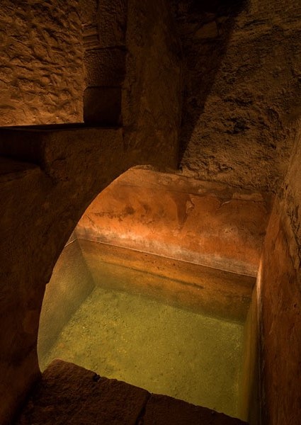 (Ampliar) - El micvé del Centre Bonastruc ça Porta - Museu d'Història dels Jueus de Girona. A la dreta de la imatge se situa la piscina. Al fons es veu la porta al carrer de Sant Llorenç.