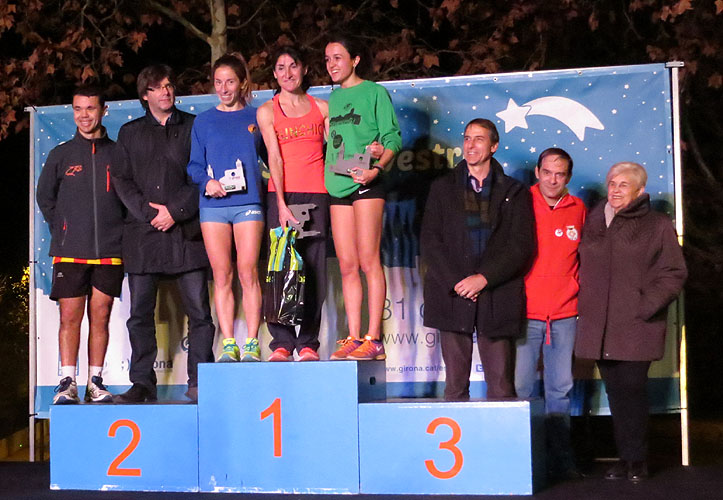 (Ampliar) - Podi femení amb les tres vencedores: Carmen Oliveras, Elena Fonalleras, i Judit Pujol.