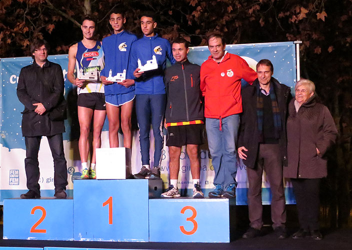 (Ampliar) - Podi masculí amb els tres vencedors: Annas Mahboub, Aleix Domènech, i Sofiane Mahboub.