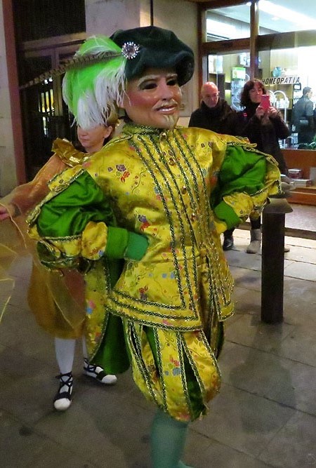 (Ampliar) - El senyor Caneló mostra el pessebre del cap de l'Esperit de Nadal, al final de la dansa a la plaça del Vi.[Més imatges]----- |