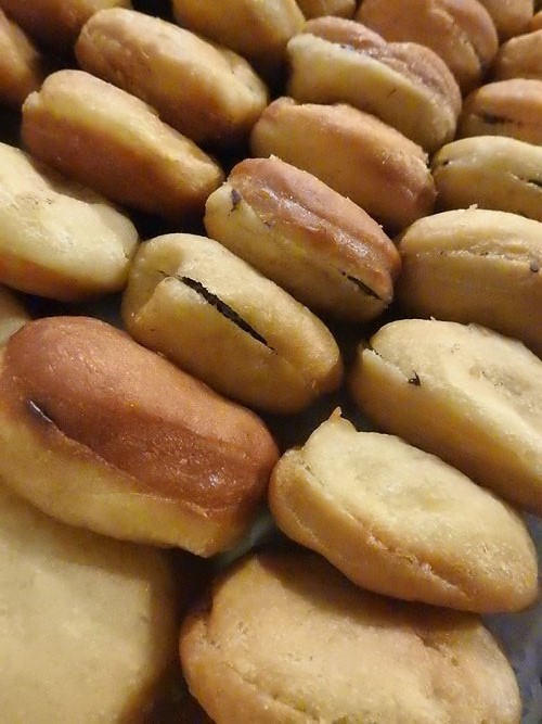 (Ampliar) - Sufganiot, una mena de bunyols rodons fregits i farcits amb melmelada o crema, cobert de sucre glacé.