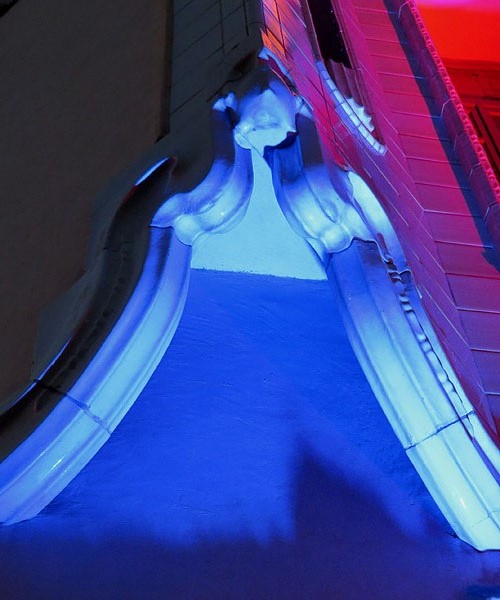 (Ampliar) - Façana de la Farinera Teixidor durant l'espectacle.