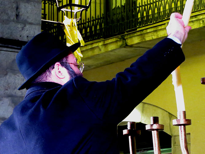 (Ampliar) - El rabí Daniel Askenazi encén el xemeix i la primera espelma.
