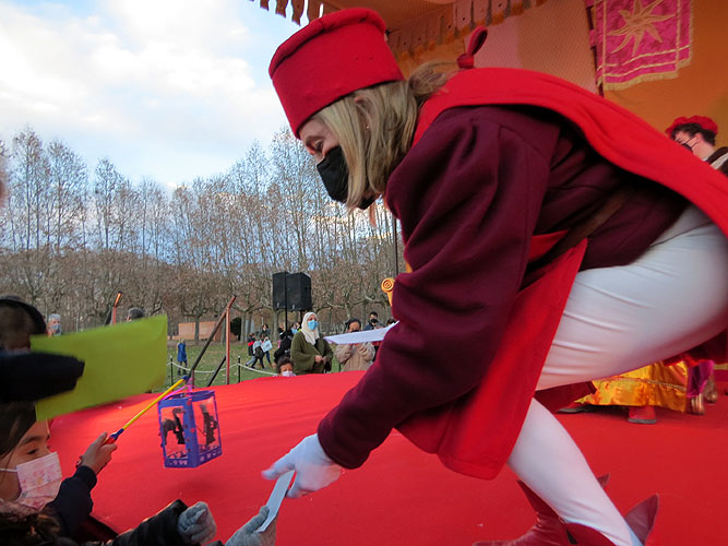 (Ampliar) - Els patges recollint les cartes de la mainada al Campament.