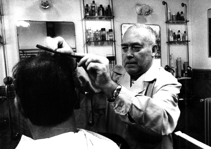 El barber Josep Vila, treballant a la seva barberia del carrer del Nord. 1993. Pep Iglésias Trias. CRDI - Ajuntament de Girona - (Ampliar)