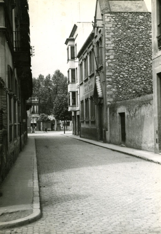 (Ampliar) - El carrer del Nord després de la col·locació de les llambordes. Vista amb el carrer Hortes al fons. Al fons a l'esquerra, la residència de les Dominiques. 1952. Francesc Coll. CRDI - Ajuntament de Girona.