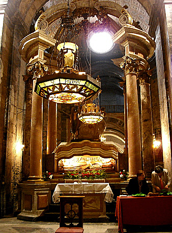 Per curar llagues n'hi havia prou amb untar-les amb oli de la llàntia que contínuament cremava davant el seu altar, però aixó sí, calia donar nou voltes al sepulcre dels Sant -pel cambril i presbiteri- portant un ciri o candela encesos, i canviant-lo per un altre a cada volta que es feia. El mateix precisava per a prevenir o curar la trencadura, i el 29 d'octubre es veien molts pares i mares plens de fe que imploraven la curació de llurs fillets tot portant-los a braç perquè complissin amb la devota impetració; les candeles s'anaven substituint per altres que s'encenien a cada volta que es donava, en el precís moment de passar davant el sepulcre del Sant que el 29 d'octubre romania obert, i uns escolans les anaven recollint per fer-les servir per al seu culte. Notes (1) - La data del 18 de març del 307 és la que dóna el dit Martirologi. En canvi s'ha escrit que dins el seu primer sepulcre es trobà un pergamí on constava que el Sant i 360 dels seus diocesans foren occits l'any 297. (2) - Aquesta disposició fou dictada el 24 de juny de 1601. Bibliografia: |