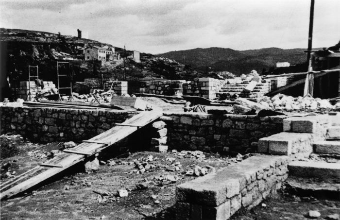 - Obres al Passeig Arqueològic. Obrers treballant a la zona del sortidor, 1961-1963. Fotografia Josep Buil i Mayral. Ajuntament de Girona