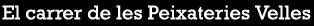 El carrer té el nom de Peixateries Velles per oposició a les "Peixateries Noves", l'edifici construït als anys 70 del segle XIX i enderrocat a la dècada dels anys quaranta del segle XX, a la cantonada del carrer Hortes amb el pont de Ferro, per encabir-hi les parades de venda de peix, on varen funcionar fins que l'Ajuntament va cedir el terreny a la Creu Roja, el 5 de setembre de 1941 (Fabre, op. cit). L'any 1944 s'inaugurava el nou mercat cobert, edificat a la plaça Calvet i Rubalcaba, el Mercat del Lleó, en terrenys que havia deixat lliures l'enderrocat baluard de Sant Francesc, on es va instal·lar la venda de peix.