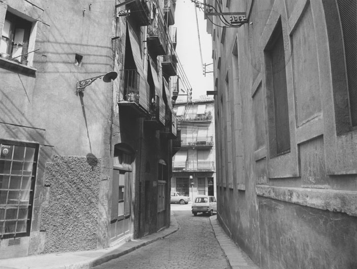 (Ampliar) - Vista del carrer Perill. 1986. Joan Segur. CRDI - Ajuntament de Girona.