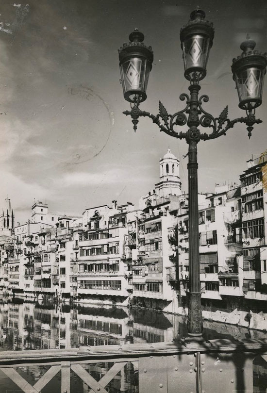 (Ampliar) - Vista de l'Onyar des del pont de Sant Agustí. Detall dels fanals. 1950-1960. Alfonso Abadal. CRDI - Ajuntament de Girona.
