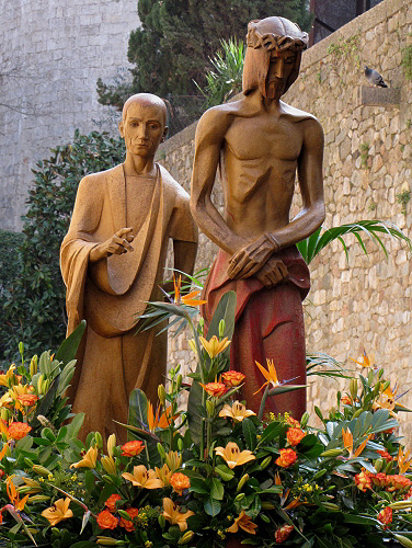 (Ampliar) - Pas de l'Ecce Homo, obra de l'artista Domènec Fita, davant el Castrum dels Manaies a Sant Lluc.