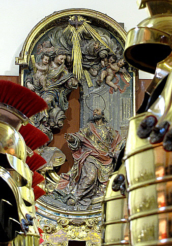 El retaule de Sant Lluc, al Castrum, entre armadures de manaies.