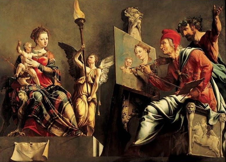 Sant Lluc pintant la Verge. Pintura al fresc de Giorgio Vasari, c. 1565. L'Annunziata, Florència. (Wikipèdia)