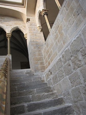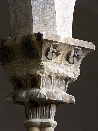 que Arnau Sans tallà la pedra de les arcades i de les columnes amb les seves bases i capitells corresponents a