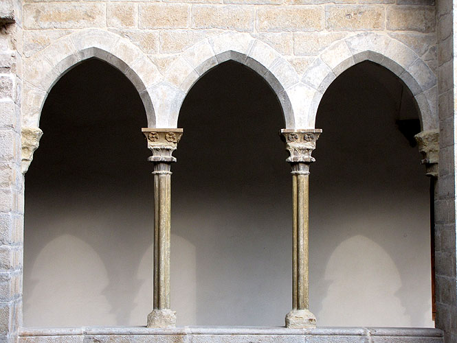 Les reformes a fons del dormitori que proposaven implicarien desmuntar la teulada, reparar els arcs, obrir noves finestres i cobrir novament la teulada. Al mateix temps, el dormitori havia de comunicar amb el sobre-claustre la construcció del qual hauria d'iniciar-se tot seguit. A més, les galeries previstes d'aquest claustre alt , s'unirien al pati del claustre baix existent, mitjançant una escala tambe de nova construcció. ![]() (Ampliar) - Arcades gòtiques de la galeria superior.