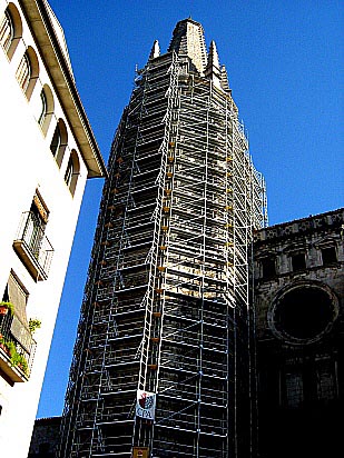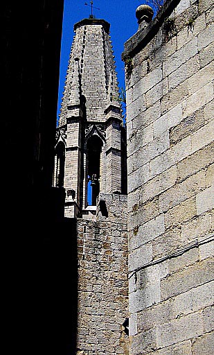 (1) - "Aquest mateix Pau [...] va robar molts vasos de plata de les possessions del Senyor i també aquella corjona d'or que el rei Recared, de bona memòria, havia ofert al cos de Sant Feliu, i que l'esmentat Pau es va atrevir a posar-se al seu cap trastocat. Tot això ho recopilaria curosament i molt devotament intentaria retornar-ho, tal com pertoca a cada església". Esmentat per Narcís M. Amich i Josep M. Nolla a "Girona goda i sarraïna". (2) - En el llibre d'ingressos de l'any 1355-1365 apareix la memòria del claustre on s'especifiquen les dimensions i el nombre de columnes de que estava format: "Memoriale de claustris huius ecclesie. In claustrono versus meridiem sive versus sanctum Narcissum et capellam Guillelmi Venrelli sunt et esse debent octo paria columpnarum et habet spacium de base ad basem expressis basibus et sine ipsis septem palmos et medium et unum quartonum. Item in claustrono versus circium sive versus hospicium Guillelmi de Ruppe sunt sex paria de eodem forma ut supra per omnia que. Item in claustrono versus occidentem sive versus reffectorium sunt septem paria, habentia VII palmos et unum quatorum inter basem et basem, sine basibus ut supra. Item in alio claustrono versus orientem sive versus sepulcrum confratrie". Estariem davant un claustre de planta trapezoïdal amb tres costats perpendiculars entre ells i un en diagonal seguint l'aliniació de l'actual carrer de la pujada del rei artí. Aquest claustre tindria una superficie interior d'uns 97 m2. Miquel Àngel Chamorro a "La construcció de l'església de Sant Feliu de Girona al segle XIV". Tornar al text(3) - El testament del sagristà Bernat Guillem, del 1081, fa una deixa per les reixes del temple; el testament de Gaufred Bastó, senyor de Cervià, del 1102, deixa per l'obra de Sant Feliu. El llegat d'Ermengarda del 1107 deixa diners per l'obra del claustre. S'han documentat deixes per obres a Sant Feliu, i no a cap altra església, entre 1225 i 1243. Esmentat per Miquel Àngel Chamorro a "La construcció de l'església de Sant Feliu de Girona al segle XIV". Tornar al text(4) - La part gòtica arribava fins l'alçada de la nau central i els cossos escalonats es van construir al segle XVI. A les visites pastorals del 1542 s'indica que el campanar no està acabat, i en el contracte signat amb el mestre Joan de Belljoch consta l'any 1532 per continuar l'obra, aixecant uns 11 metres. L'última clau de volta data de l'any 1572. Esmentat per Miquel Àngel Chamorro a "La construcció de l'església de Sant Feliu de Girona al segle XIV". Tornar al textBibliografia: |