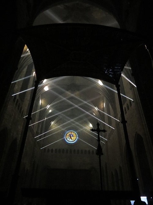 (Ampliar) - La volta de la nau gòtica durant l'espectacle.