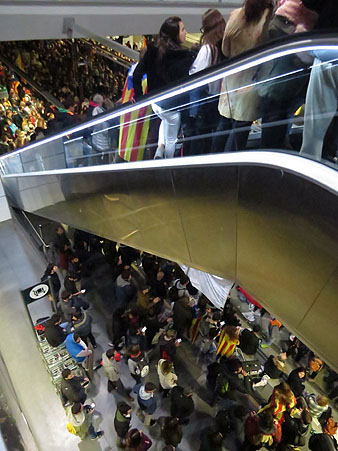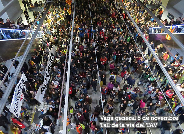 El dimecres 8 de novembre 2017, dia de vaga general a Catalunya, convocada en protesta per l’empresonament de la meitat dels membres del govern escollits a les urnes i cessats per un decret del govern espanyol, i dels presidents de les entitats sobiranistes, Jordi Sànchez i Jordi Cuixart, entre 15.000 i 18.000 persones es varen concentrar durant tarda a la Plaça del Vi de Girona. Acabada la concentració, moltes persones es varen desplaçar a l'estació del TGV on, en resposta a la convocatòria de les organitzacions ciutadanes CDR ("Comitès de Defensa de la República") i d'altres col·lectius, s'havia tallat la via, en una acció de protesta que va durar més de dotze hores, fins cap a les deu de la nit. Amb l'abandó de les vies, i paral·lelament, es va procedir a la neteja absoluta de l'indret, fet que varen destacar els mitjans de comunicació.