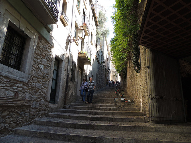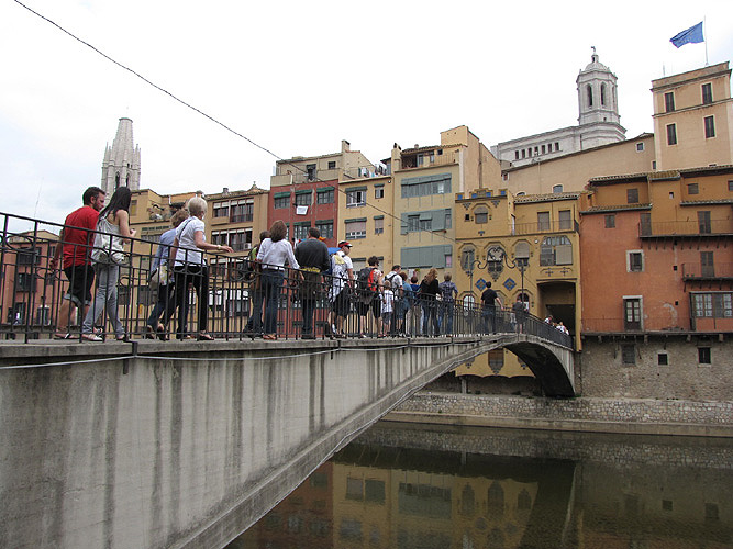 Visitants travessant el pont d'en Gómez, cap al Barri Vell. |