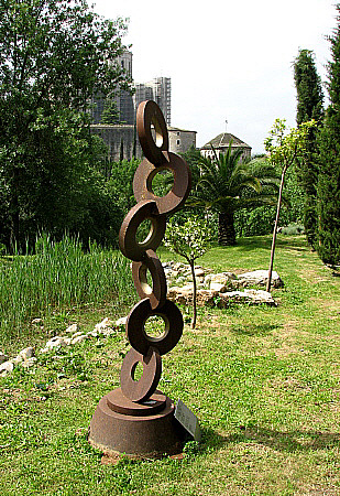 10 de maig 2009. Jardins de John Lennon. Escultura "Cadena vertical" de Jaume Rosés, 1977