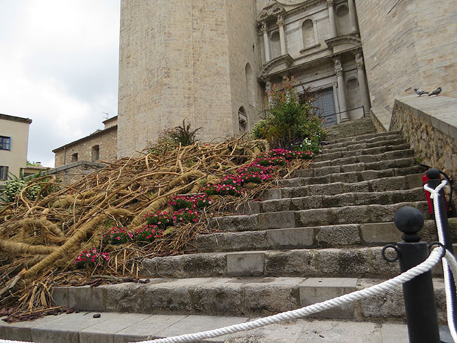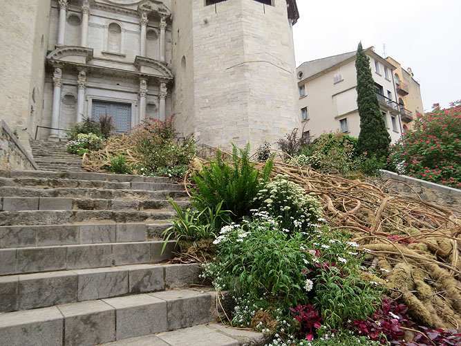 Del 8 al 16 de maig de 2021 es va celebrar a Girona una edició atípica de l'esdeveniment "Girona Temps de Flors", en aquesta ocasió "A cel obert", en la que totes les instal·lacions i muntatges són en espais oberts, i abasta diversos barris de la ciutat. El muntatge "Fluint" parteix d'un espai, les escales de Sant Feliu, majestuós i imponent, una construcció impressionant. També està al costat del riu Onyar, una de les imatges icòniques de Girona. Tenint aquests elements presents, s'aplica una visió i un estil naturalista a la decoració. És obra de Dídac Pérez, Jordi Pasqual, Núria Simon i Ana Begisheva.