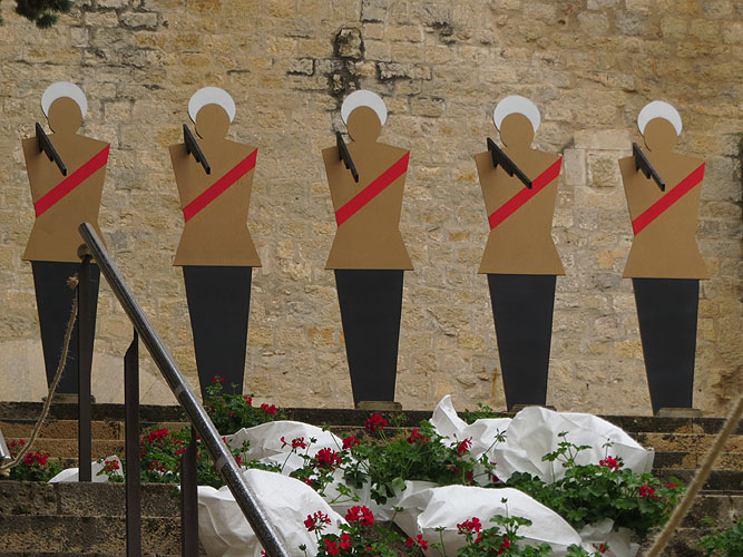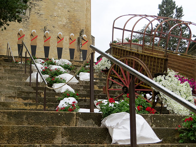 El muntatge "L'escala d'Odessa", instal·lat a les escales de Sant Domènec és, reinterpreta la coneguda escena final del film de Serguei Eisenstein "El cuirassat Potemkin" (1925), en què el poble innocent fuig de l'exèrcit del tsar espaordit escales avall. Malgrat la complicada transició per transformar una seqüència fílmica en una actuació permanent i floral, es pretén capturar un instant de l'escena cabdal deel film esconstruint-la a l'escala de Sant Domènec. La instal·lació és obra d'Anna Comas, Daniela Xifra, Jordi Llinares, Jordi Pujol, Toni Redorta, Xevi Montal, Sabrina Sampere i Daniel Xifra.