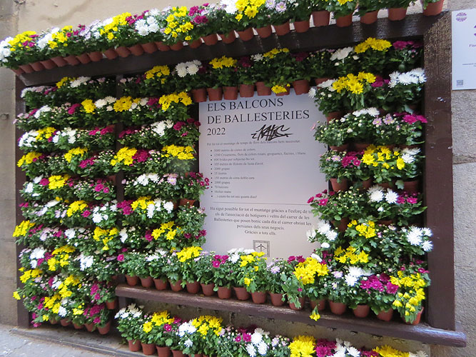 Del dissabte 7 al diumenge 15 de maig 2022 s'ha celebrat la 67ena. edició de l'esdeveniment "Girona Temps de Flors", una setmana durant la qual els projectes florals omplen de color i creativitat els principals monuments de la ciutat. Al carrer Ballesteries es mostra la instal·lació "Flors als balcons", de l'Associació de Botiguers, Industrials i Veïns del Carrer de les Ballesteries.
