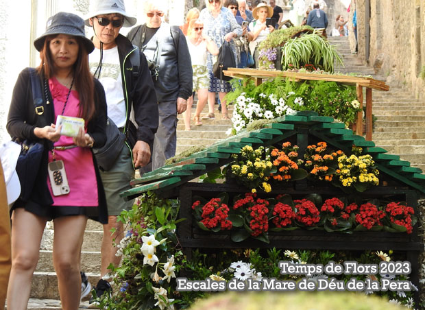 Del dissabte 13 al diumenge 21 de maig 2023 s'ha celebrat la 68ena. edició de l'esdeveniment "Girona Temps de Flors", una setmana durant la qual els projectes florals omplen de color i creativitat els principals monuments de la ciutat. A les escales de la Mare de Déu de la Pera, s'hi mostra la instal·lació "Primaveres", de Marga Icart, Albert Falgarona, Teresa Adserias, Jordi Russell, alumnes del CFGM de Jardineria i Floristeria i de l'INS La Garrotxa.