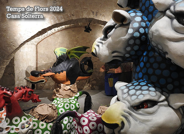 gegants, capgrossos, dracs, mules... amb el títol de "Florir, ballar i riure". Autors: Nuxu Perpinyà, La Caseta-Serveis Educatius, Associació Amics de les Flors de Girona, Colla gegantera Fal·lera Gironina, Caixa de Trons Girona, Diables de l’Onyar, La gegantona del Pont Girona, Associació Baba Barota, Colla gegantera de Santa Eugènia de Ter, Maria Mercè Julià Gelabert, i formadors i alumnes de Smilax Escola d’Art Floral.