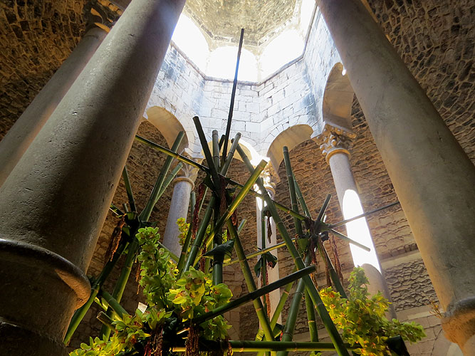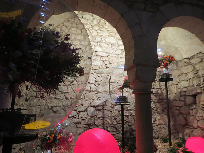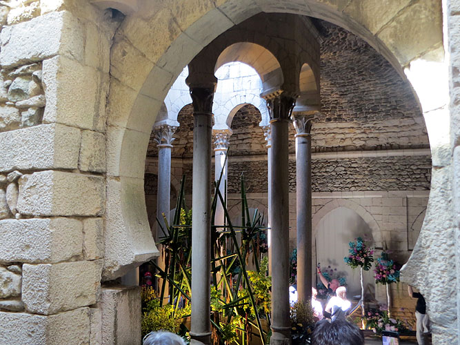 Als diversos espais dels Banys Àrabs es varen instal·lar els muntatges "Aixecant, en construcció", "Composició floral", "De Dalí o dalinià?", "Jardí de les dualitats" i "La puput voleia Girona".