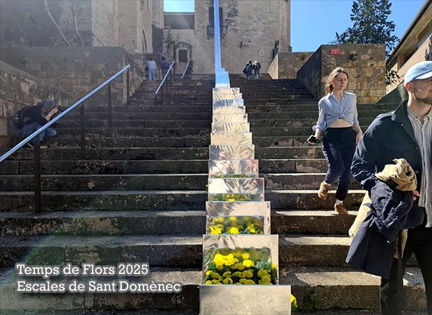 A les Escales de Sant Domènec es va instal·lar el muntatge "Estirant el cel". Aquesta instal·lació juga amb el reflex com a element principal, emfatitzant un fragment de l’escala de Sant Domènec i projectant-lo cap al cel. Acompanyada de flors, genera un diàleg amb el paisatge, l’arquitectura i l’entorn, per definir una presència clara dins l’espai i activar-ne la percepció. Coordinació: Carlos Gonzalvo i Julia Capomaggi. Elaborat per Meritxell Alsina, Carla Barneda, Carles Bermúdez, Gina Font, Jordi Garcia, Júlia Jiménez, Georgina López, Berta Mata, Anna Taulera i Aina Valls.