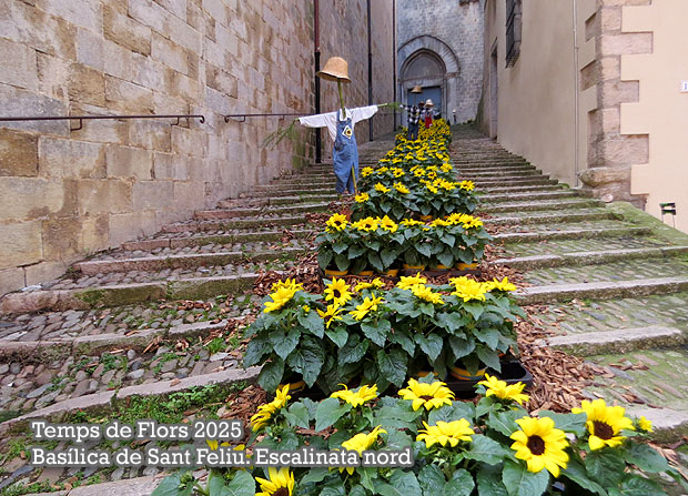 A l'escalinata lateral de la band anord de la Basílica de Sant Feliu s'hi va instal·lar el muntatge "Camp de gira-sols" Lo gira-sol / de tan adorar al Sol / n'ha presa la fesomia. / Tot lo sant dia, / lo segueix amb sa mirada, / com l'aimador a l'aimada. / Quan lo veu que naix a llevant / està rient, / quan veu que mor a ponent / està plorant / llavors lo dol / del gira-sol / és gran. Jacint Verdaguer. Elaborat per Maria Rosa Corredor, Carme Albareda, Joana Albareda, Josep Méndez, Kati Bota, Mercè Brea, Olga Brea, Carme Bussó, Mercè Cla, Anna Munné, Anna Parera, Neus Pons i Rosa Rubio.