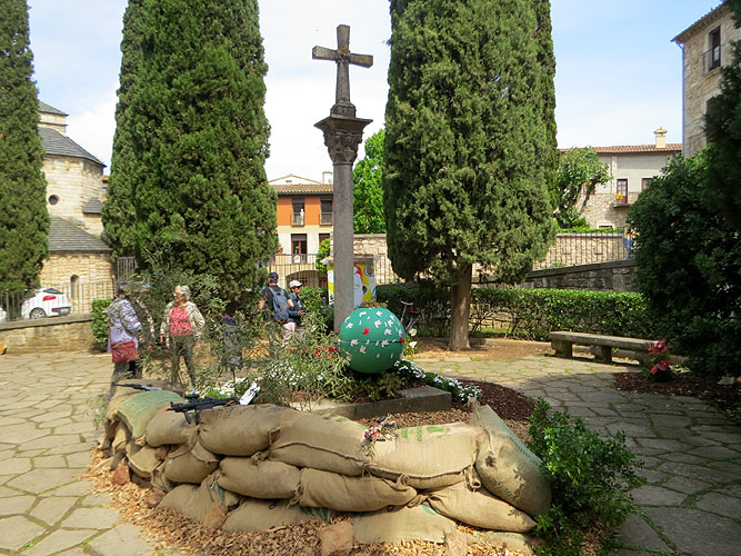 A la Creu de Terme de Sant Pere de Galligants es va instal·lar el muntatge floral "Com viure per conviure". Construint la cultura de pau i convivència. Com hauríem de viure per poder conviure tots plegats? L'incivisme ens porta conflictes. Les guerres, destrucció. Cal treballar per la justícia, l'esperança i la pau. Elaborat pels Voluntaris de les Confraries de Setmana Santa de Girona.