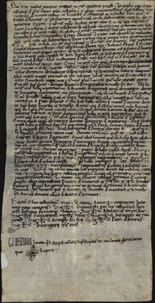24/05/1148. Testament de Gaufred d'Illes qui llega, entre d'altres, el mas Vilar de Tremun, situat a la parròquia de Santa Maria d'Agullana. Biblioteca de Catalunya - (Ampliar)